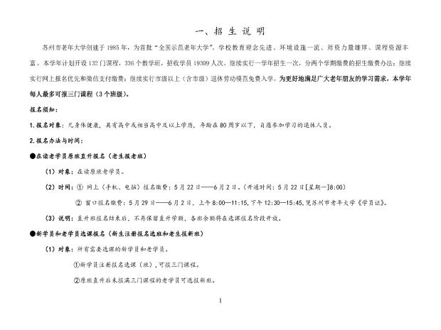 苏州市老年大学2023-2024学年度招生简章